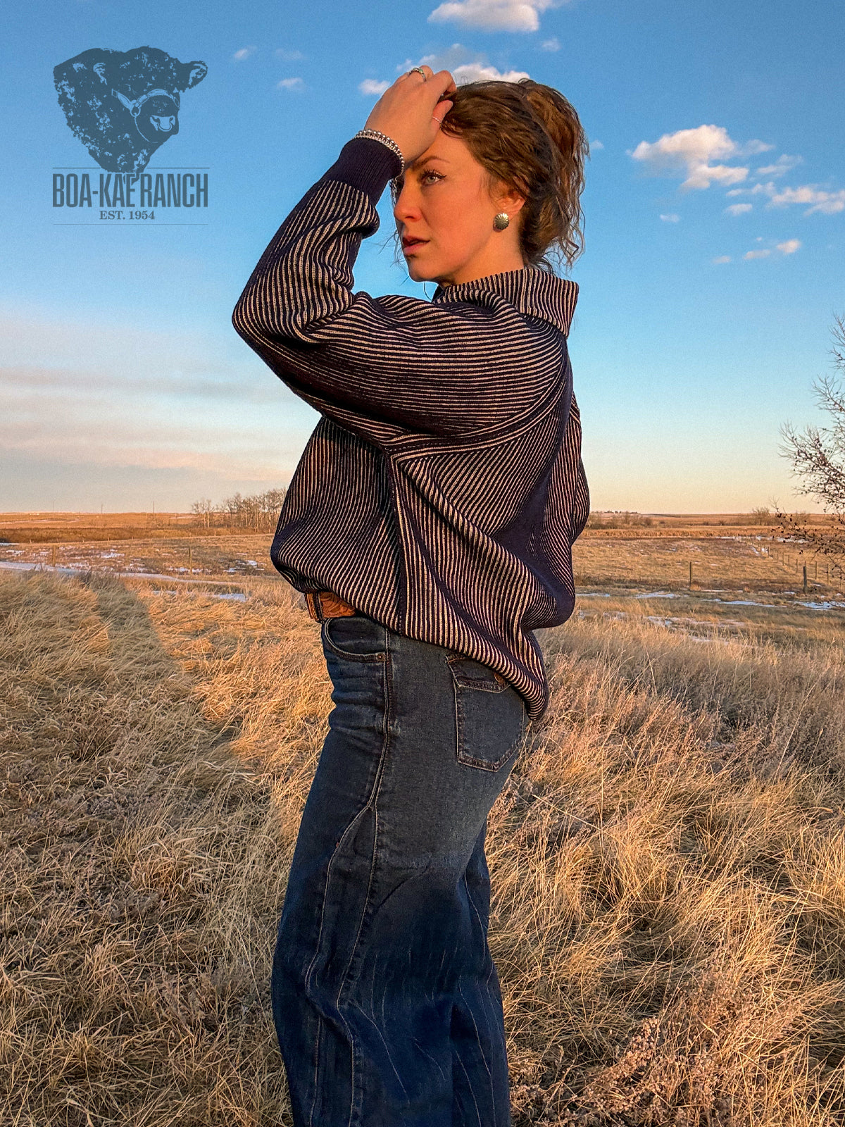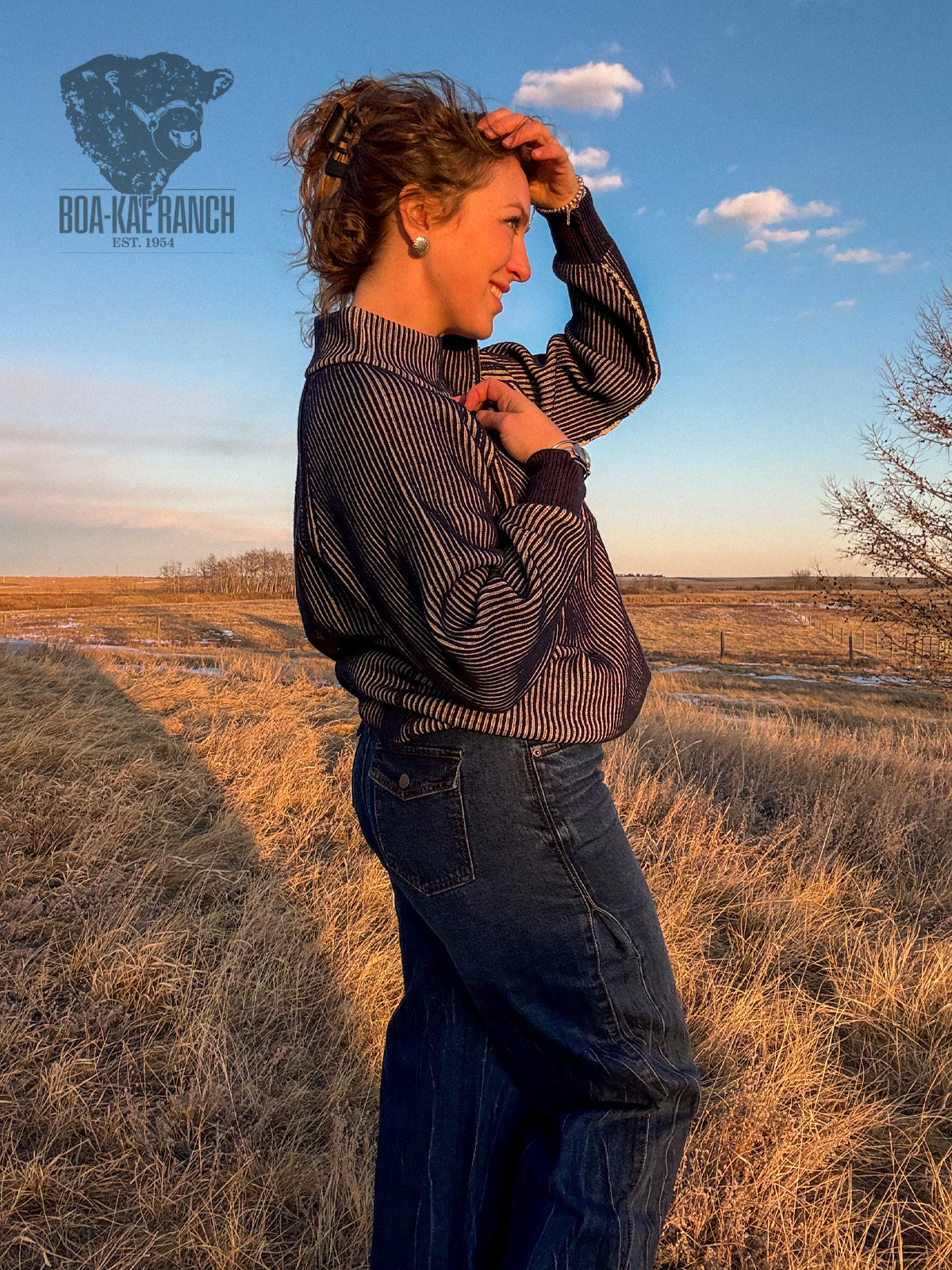 Stay cozy and cute in this mid weight cotton blend quarter zip sweater! Features a casual raglan sleeve in this cool ribbed knit navy/oat mix, a 3" navy cuff, and 3.5" stand up collar. A great layering piece and works in every season!